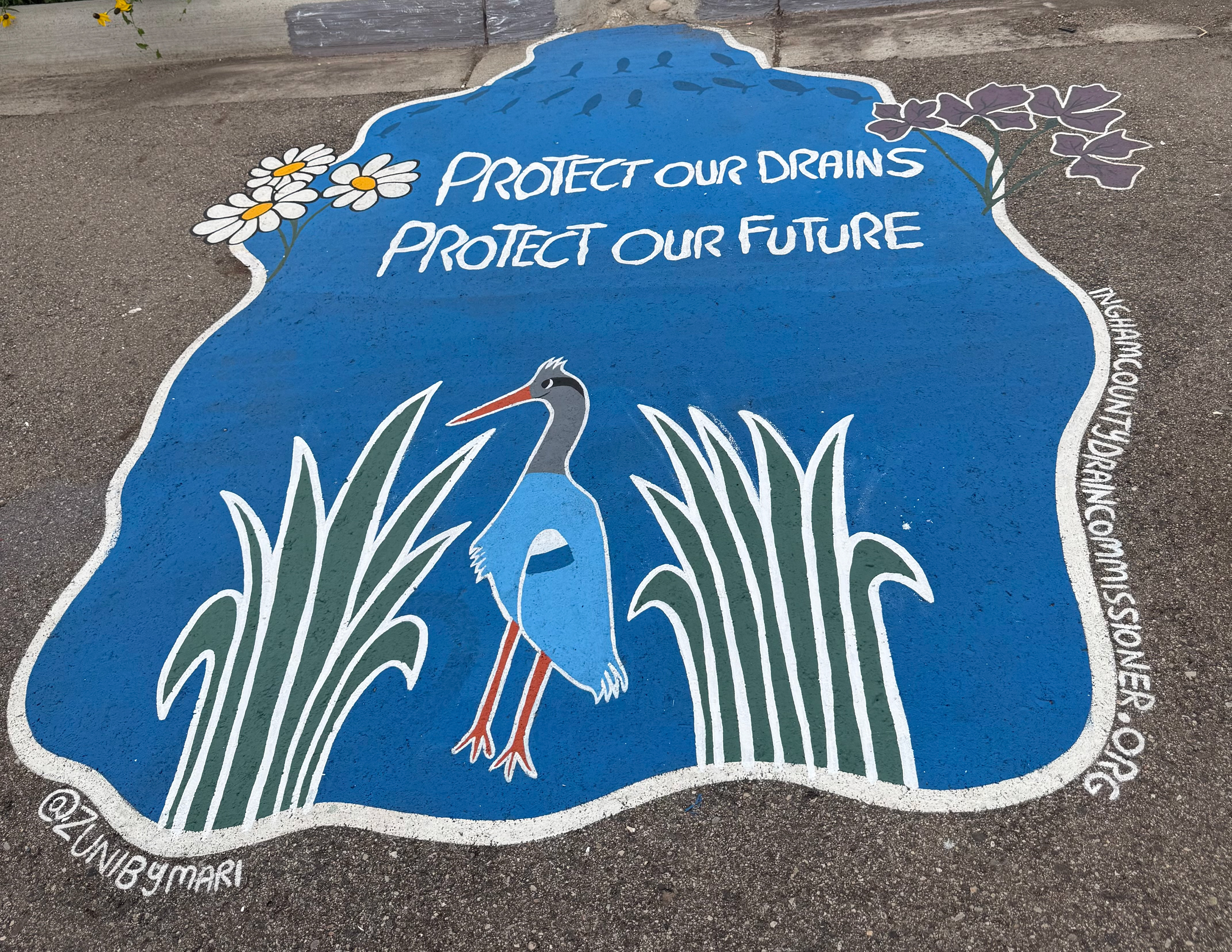 I was selected to do a total of seven murals for the different areas listed above, and worked with various environmental planners, drain commissioners, and operation and project managers/directors to plan and execute each mural in their selected areas.